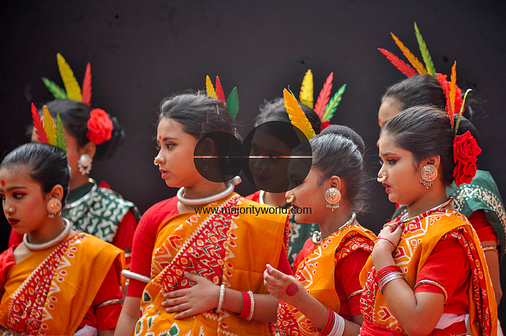 • Description: Young girls dressed in traditional Hill Tracts attire perform a cultural dance during the Bosonto (spring) celebration in Chattogram. The festival marks the arrival of spring with vibrant costumes, music, and traditional performances that reflect the rich ethnic heritage of the region. Chattogram, Bangladesh.
