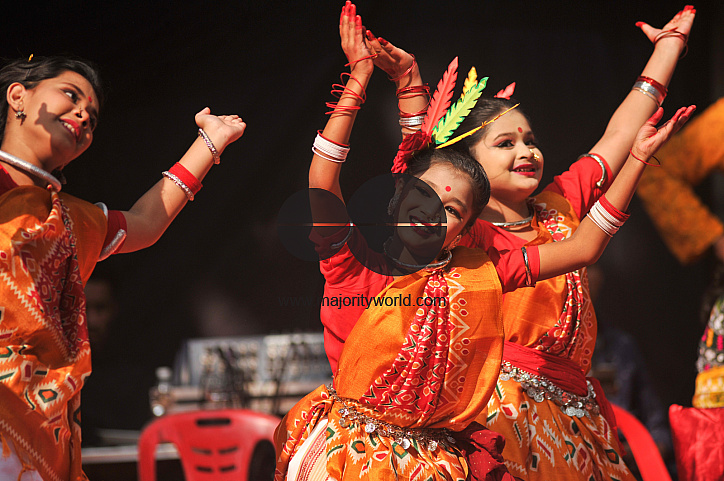 • Description: Young girls dressed in traditional Hill Tracts attire perform a cultural dance during the Bosonto (spring) celebration in Chattogram. The festival marks the arrival of spring with vibrant costumes, music, and traditional performances that reflect the rich ethnic heritage of the region. Chattogram, Bangladesh.