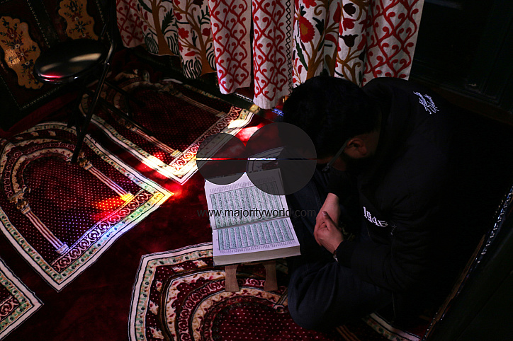 • Description: Kashmir, India. 19th February 2026. Muslims offer prayers inside a mosque on the first day of the holy month of Ramadan in Indian-administered Kashmir. Worshippers gather for congregational prayers as others recite the Quran in reflection. Across the region, markets see increased activity with vendors selling dates and food items ahead of iftar, the meal that breaks the dawn-to-sunset fast observed during Ramadan.