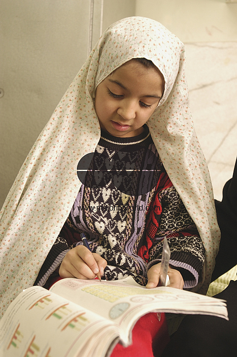 A girl does her home-work at Maawin Nursery, an orphanage run by Kerman Welfare Organization. She is one of the victims of recent massive earthquake in Bam. The earthquake took place in December 2004 leaving the city of Bam entirely destroyed and killing
