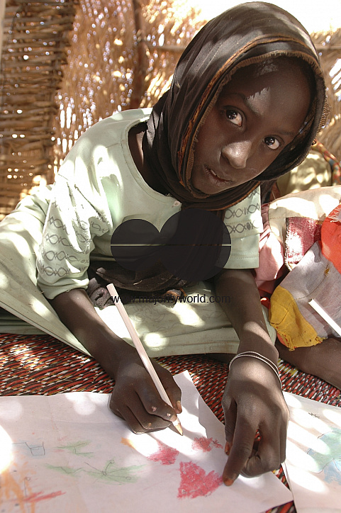 A young boy makes clay toys in a UNICEF supported Safe Play Center in Kalma IDP Camp (Internally Displaced Person) 14 km East of Nyala, South Darfur. UNICEF helped construct Safe Play Center with locally available materials as well as provided training for facilitators training and provided recreational material. Sudan. November 8, 2004.
