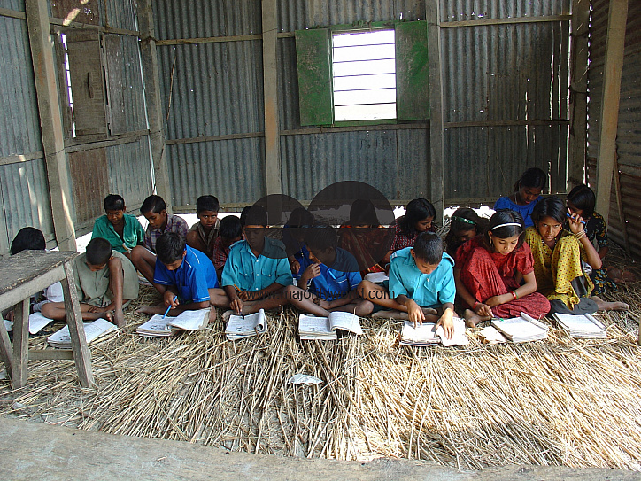 Bangladesh. Children taking class at a primary school at Gaibandha. In recent times there has been an unprecedented upserge in women's education as part of mass literacy drive throughout the country.