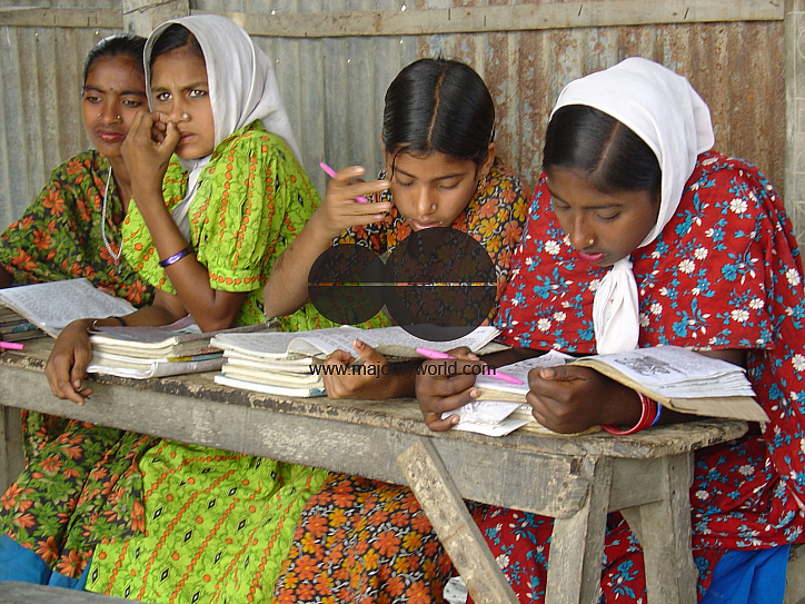 Bangladesh. Children taking class at a primary school at Gaibandha. In recent times there has been an unprecedented upserge in women's education as part of mass literacy drive throughout the country.
