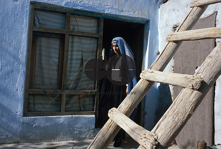 Lina, 18 years old, leaves her home to go to a Home Based School near by in the Khairkhana neighbourhood in Kabul, the capital. Taslima completed the third grade before she was forced to stop school. Determined to continue her education, she asked her brother, a university student, to help her study. She now takes tailoring and embroidery, as well as literacy and other classes, at an educational centre run by the General Work and Development Association (GWA), a local NGO. The Association offers a non-formal education programme for adolescent and other women who previously could not attend school. Afghanistan.