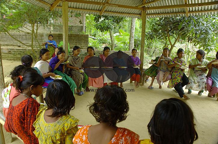 Tribal Garo students taking their foods at Diklakona Salgittal Hostel at Lauchapra in Jamalpur district. Lauchapra, Bakshiganj, Jamalpur, Bangladesh. August 22, 2006.