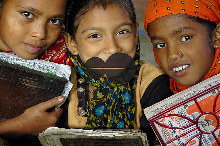 Portrait of maktab students. Maktab an Arabic word meaning schools for teaching children elementary Islamic subjects. Dhaka, Bangladesh. November 11, 2006.