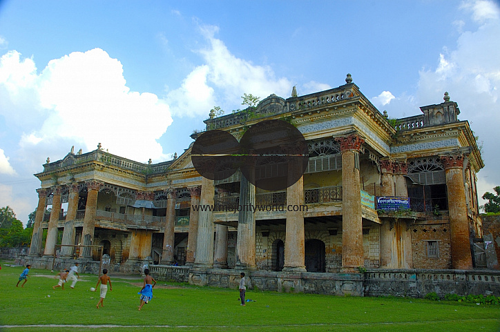 The two-storied Puthia Rajbari, which is the most notable structure in the area on the north. This grand palace was constructed by Rani Hemanta Kumari Devi in 1895 AD in honour of her mother-in-law Maharani Saratsundari Devi. At present Lashkarpur Degree