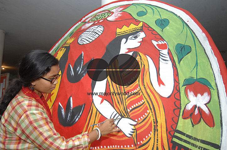 Student of the Fine Art Institute of Dhaka University making preparations for Bangla new year festival (Pahela Baisakh). Dhaka, Bangladesh. 2007.