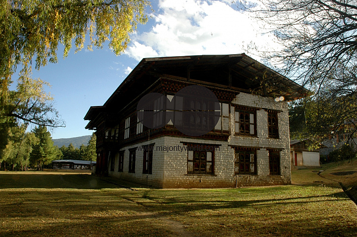 A high school building in Paro city of Bhutan. Paro is famous for its landscape and a place of tourist interest. Paro, Bhutan. November 12, 2007.