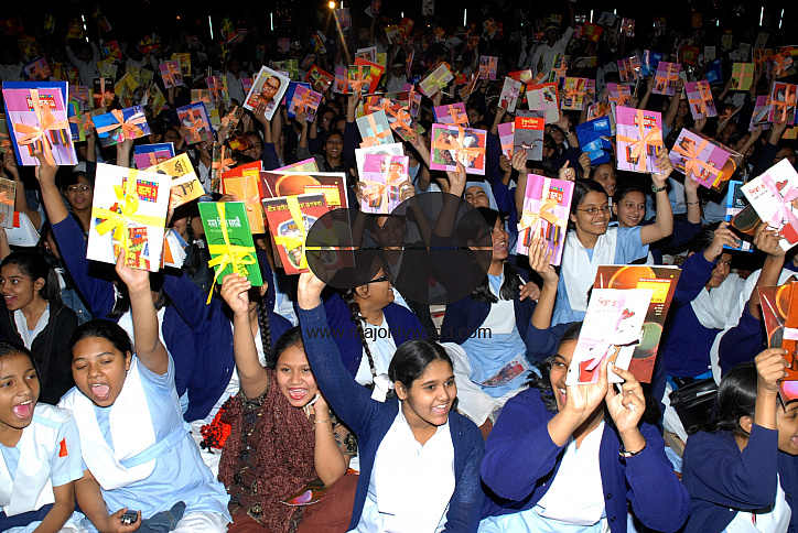 Participants of the book reading program under the slogan ‘Alokito manush chai’ or ‘We want enlightened people’, showing their prizes, at Ramna Batamul, in Dhaka, Bangladesh. February 16, 2008.