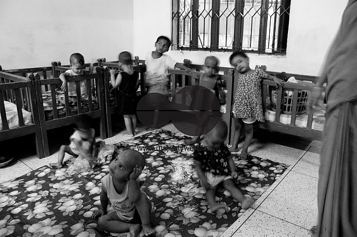 As the end of the day approaches, the children's cheerful faces become impatient as they wait to see their mothers. Dhaka, Bangladesh. May 13, 2007.