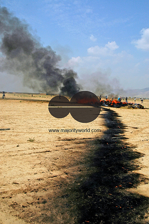 About 6,000 kilograms of heroin, hashish, and opium were burnt by the Interior Ministry in Kabul, Afghanistan. The country produces 90% of the world's heroin each year. The Afghan government, in cooperation with the international community, has spent millions of dollars countering the narcotics trade since 2002. Kabul, Afghanistan. June 26, 2007.