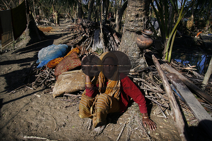 A helpless victim of the cyclone SIDR at the village of Shoronkhola. SIDR hits the village on the night of 15th November causing huge damage of lives and properties. Shoronkhola, Bagerhat. November 20, 2007.