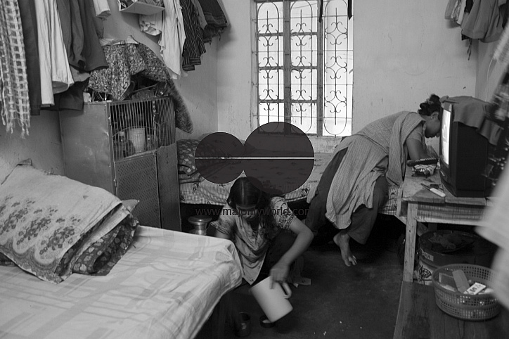 Garment workers busy with household chores. They can no longer return to their village. They are getting used to with urban life. June 25, 2006.