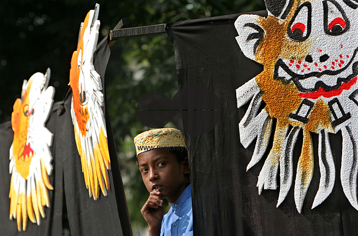 Bangladeshi boy stand with symbolic banners of the war criminals of the Liberation war in 1971 against Pakistan, during the victory day at the central Shaheed Minar, Dhaka, Bangladesh 16 December 2007. The whole nation celebrates the 36th Bangladeshi boy
