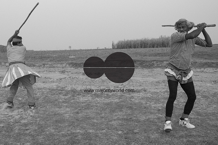 Lathikhela (club game) teaches self-defense with sticks. Until recently, the zamindars (landlords) of Bangladesh employed a group of lathials (stalwarts wielding sticks) for security. In the char (shoal) lands, people still take possession of chars through stick fights. During 'Ashura' (Religious festival of Islam, celebrated on the 10th day of the Muslim month of Muharram) lathials demonstrate their prowess and mettle in this game. The sticks used for this game are four and a half to five feet long, and are often smeared with oil. Players maneuver their respective sticks around their body with stunning agility. Only sturdy youth take part in the game. Kushtia, Bangladesh. January 1, 2007.