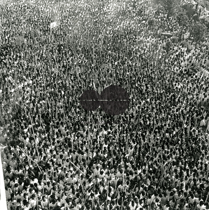 7th March, 1971: A large mass walk through the road in front G.P.O. toward Race Course now Sohrowardi Uddyan, to attend Bangabandhus meeting. Dhaka, East Pakistan.