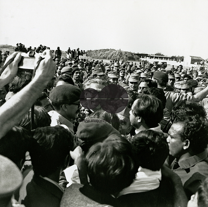January 10, 1972: An emotional moment among his country men at Tejgaon Airport, when Bangabandhu returns after a ten month long imprisonment in West Pakistan. Dhaka, Bangladesh.