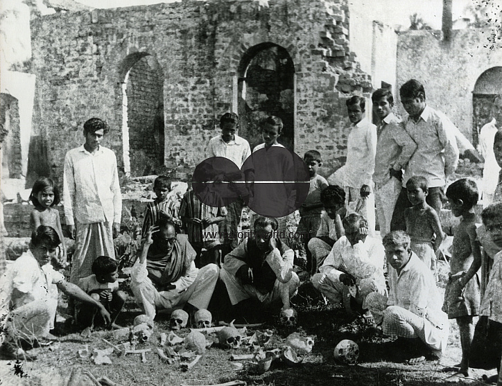 Engineer Mosharraf Hossain, Member of Provincial Parliament, MPA, and Bodiuzzaman, Awami leader seeing the remains of Bengalis killed by the Pak military during Liberation War, in Chachra, Jessore. Bangladesh. 1971.