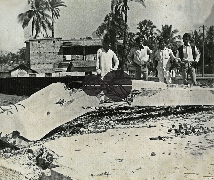 After the Liberation War in 1971, to observe 21st February of 1972 in an independent Bangladesh, a group of students on going to the Jessore central Shahid Minar, found it ravaged by the invading force. Bangladesh. February 15, 1972.