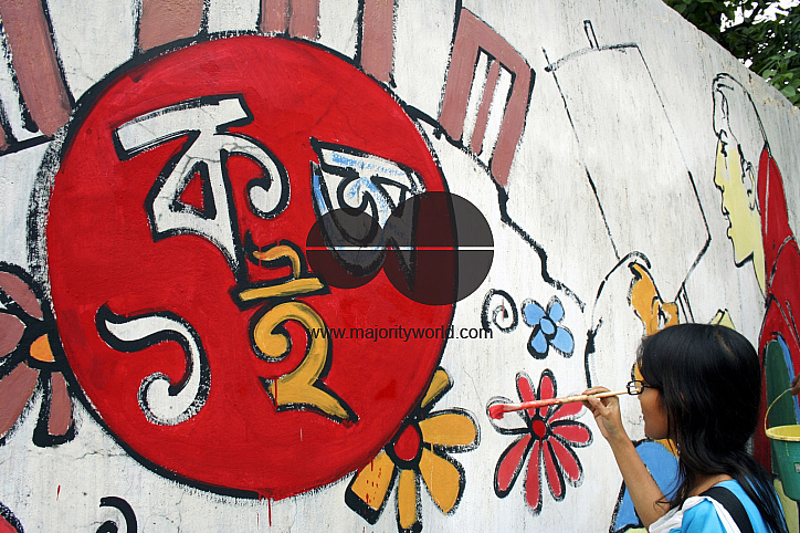 A student of Dhaka University paints the wall beside Central Shaheed Minar, language movement martyrs’ monument, ahead of Shaheed Dibosh and International Mother Language Day on 21st February. Dhaka, Bangladesh. February19, 2008.