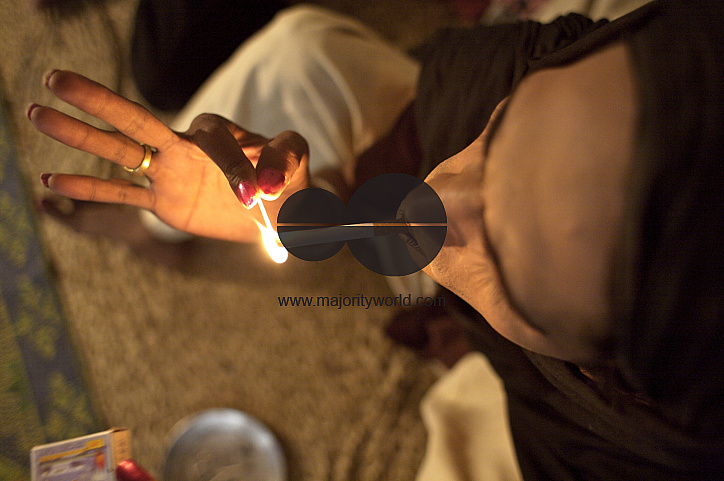 Noreen Madam, name changed, lights up a cigarette filled with charas, a drug made from the cannabis plant, in a hideout, in Moosa colony, in Karachi, the trade city of Pakistan. To make a living, he works as an entertainer as well as sex worker. Stigma against transvestites in Pakistan leaves little option for them to do anything else. April 4, 2007.