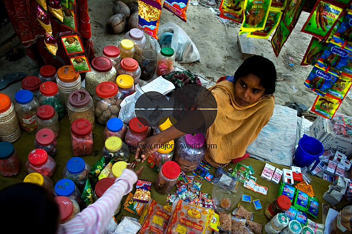 Fatema, a young girl, tries to help her family by running a small shop beside the road. Shoronkhola, Khulna, Bangladesh. January 16, 2008. The affected People of the coastal areas, struggle to get back to the normal course of life, after the devastation o