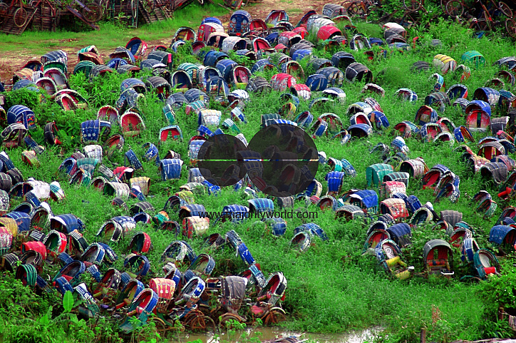 A site at Agargaon, where Dhaka Metropolitan Police dump rickshaws, confiscated from rickshaw pullers who violate the traffic laws or pull without license. Dhaka, Bangladesh. July 22, 2007.