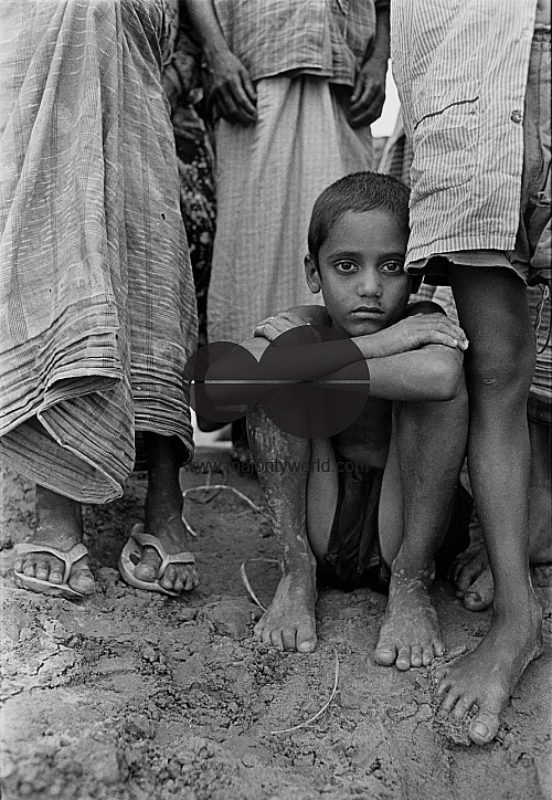 With utter despair a child sits on the bank of the Brhammaputra river, amidst people who has lost their lands by river erosion. Bangladesh.